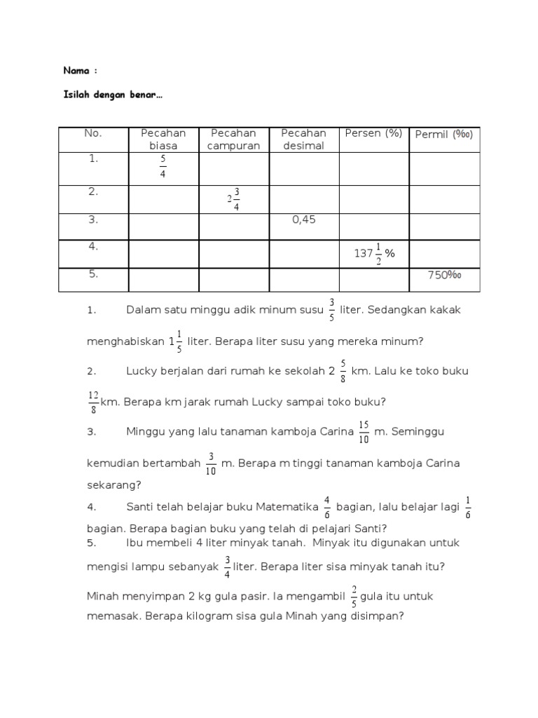 Nama Isilah Dengan Benar Ibu Membeli 4 Liter Minyak Tanah Minyak Itu Digunakan Untuk Mengisi Lampu Sebanyak