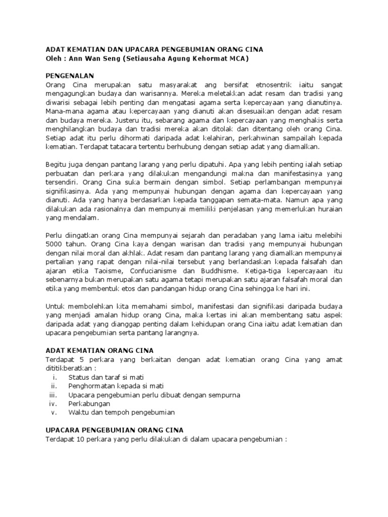 Adat Kematian Dan Upacara Pengebumian Orang Cina1