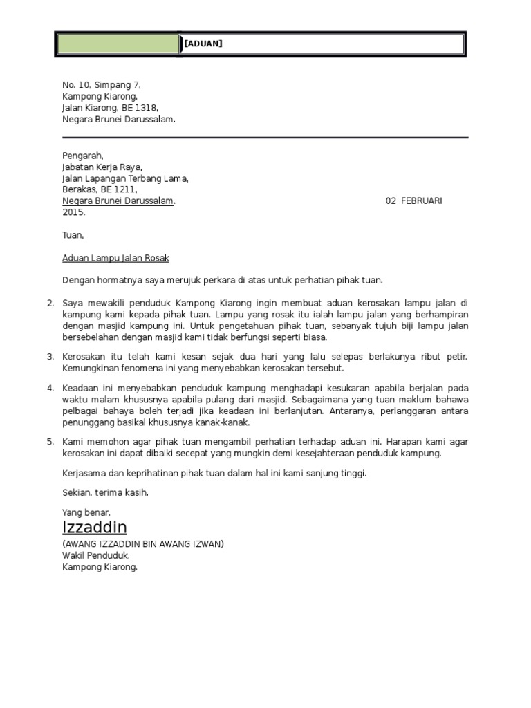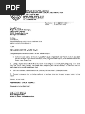 Contoh Surat Rasmi Aduan Kerosakan Jalan Raya Contoh O Cute766