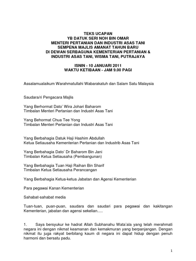 Amanat Tahun Baru 2011 Oleh Yb Menteri Pertanian Dan Industri Asas Tani