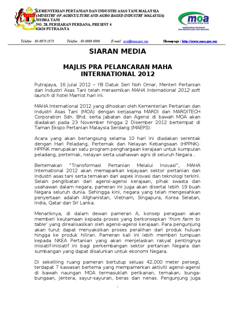 Siaran Media Majlis Pra Pelancaran Maha International 2012
