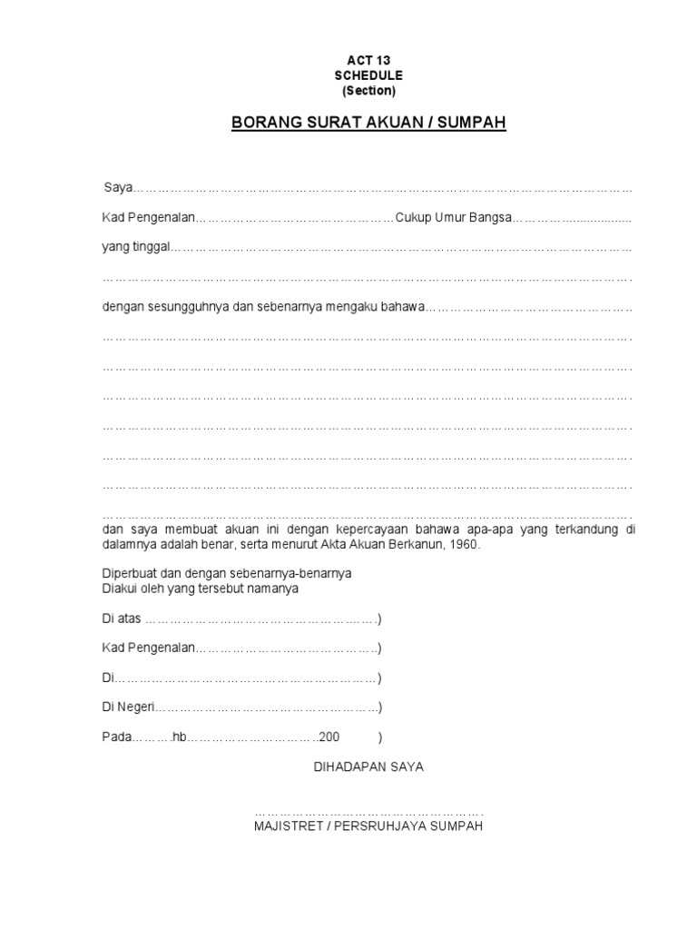 Akta 13 Akuan Sumpah Pdf