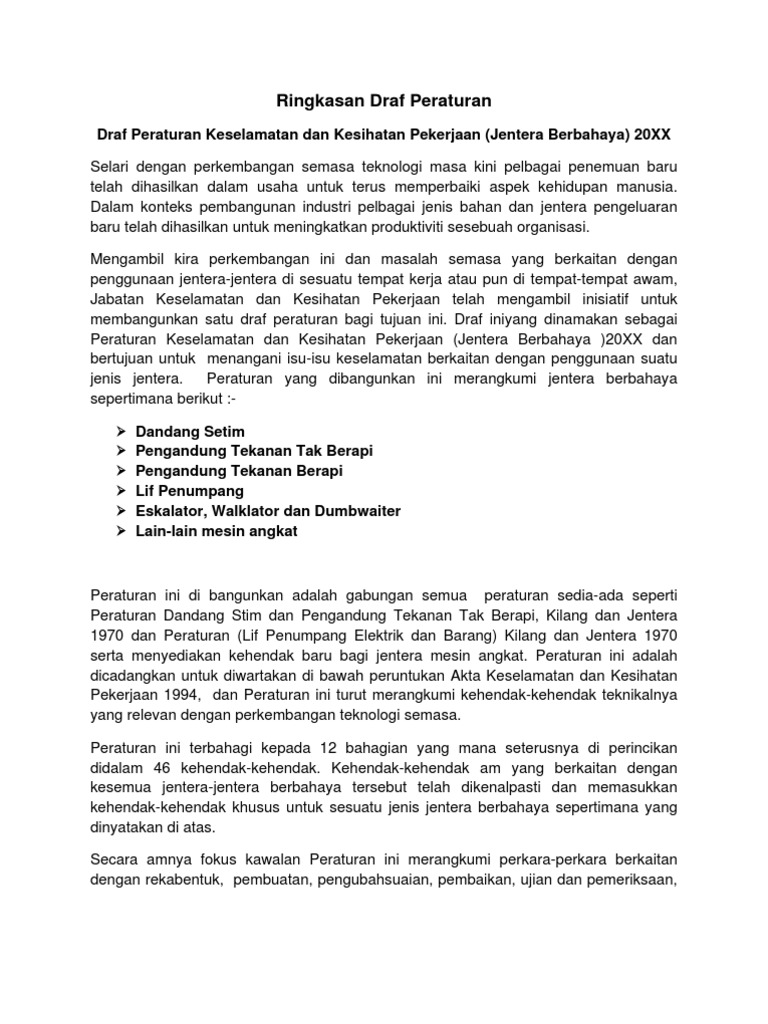Peraturan Keselamatan Kesihatan Dan Kebajikan Kilang Dan Jentera Pdf Document
