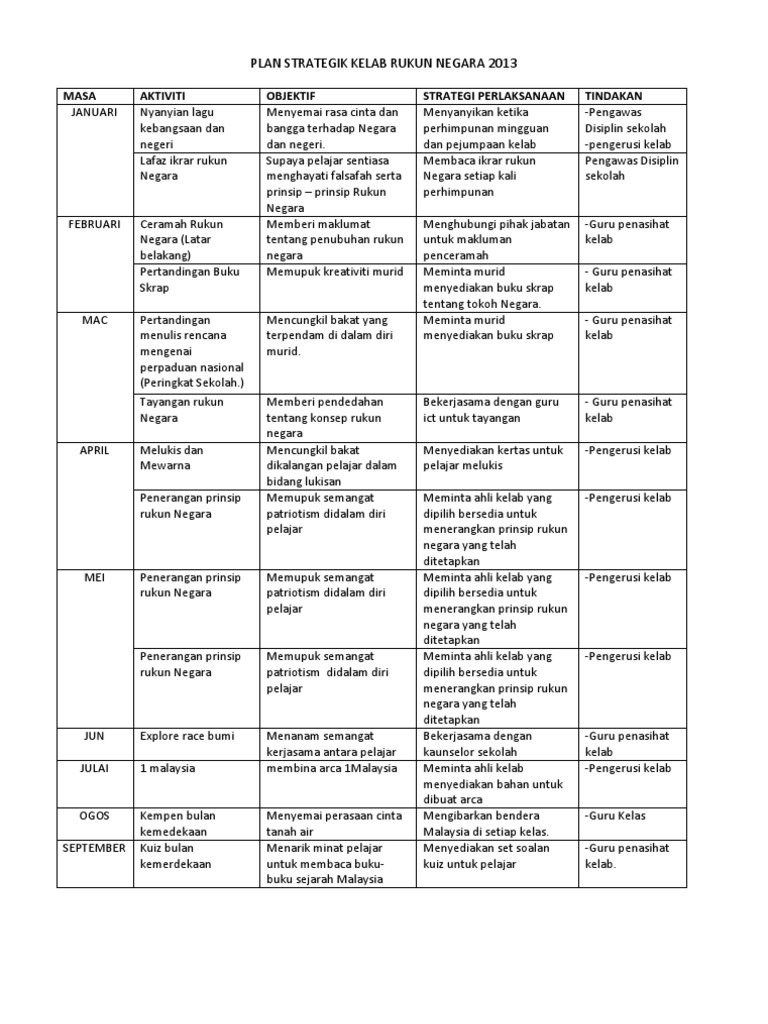 Doc Rancangan Aktiviti Tahunan Kelab Rukunegara 2018 Norhaini Nadi Academia Edu
