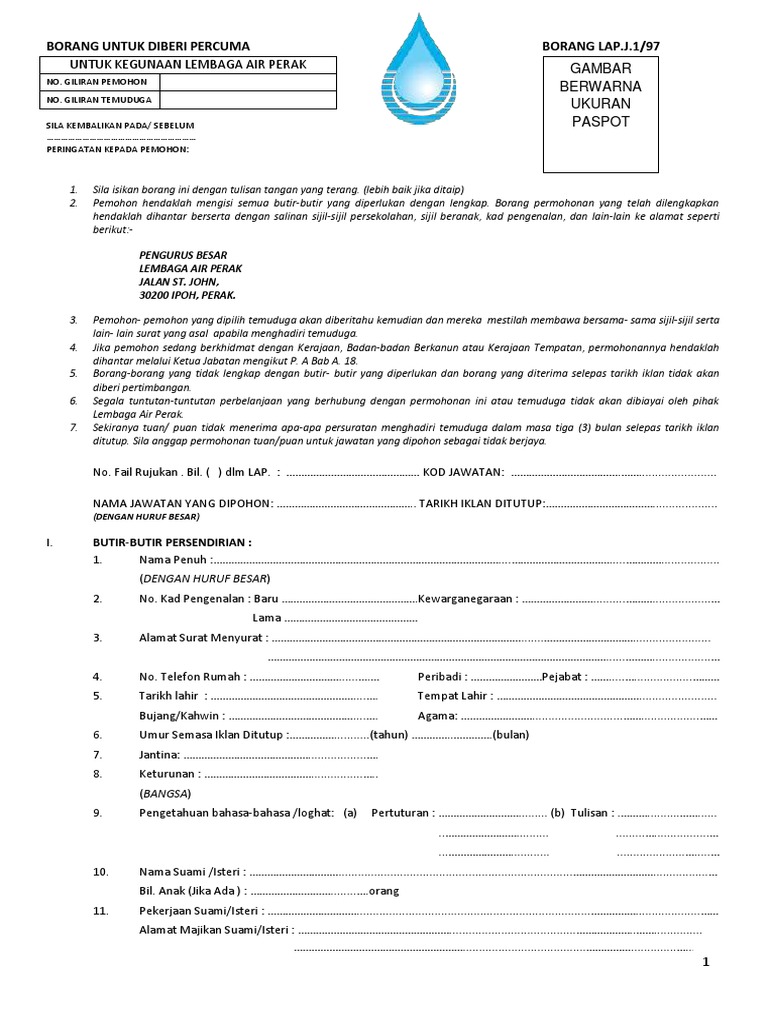 Untuk Kegunaan Lembaga Air Perak Gambar Berwarna Ukuran Paspot