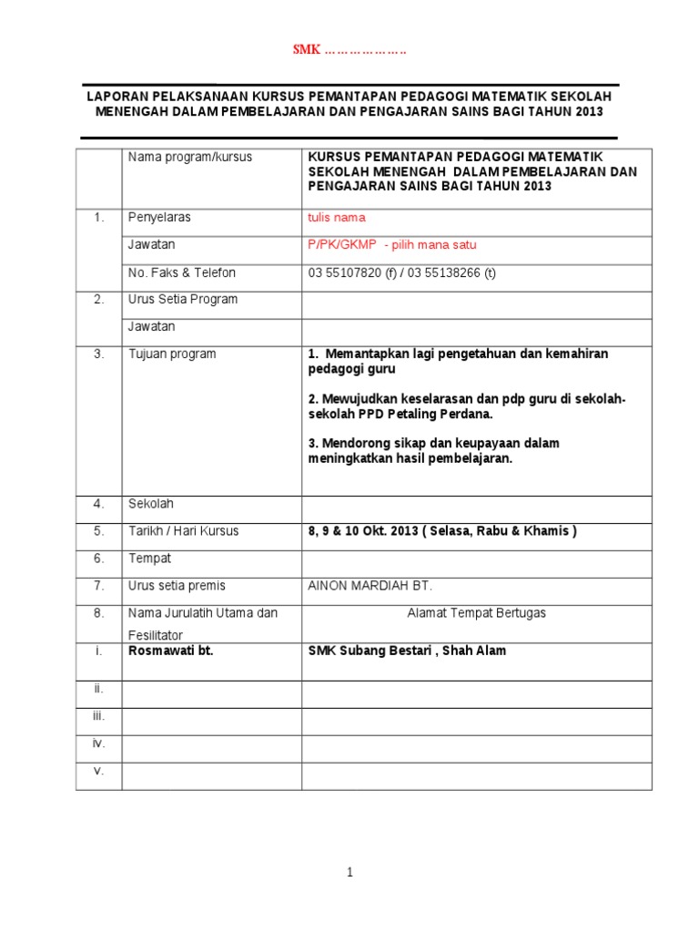 Contoh Format Laporan Kursus Pedagogi 2013 1 Pdf Document
