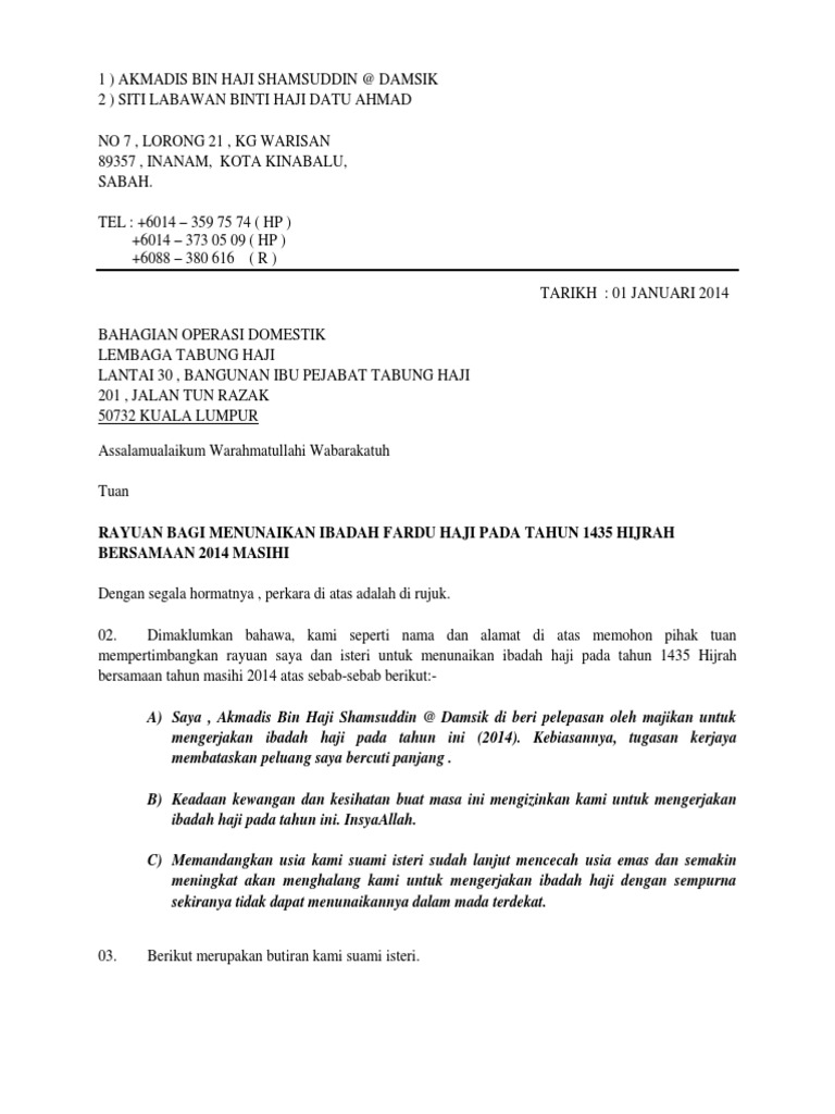 Alamat Surat Rayuan Tabung Haji Spooky L