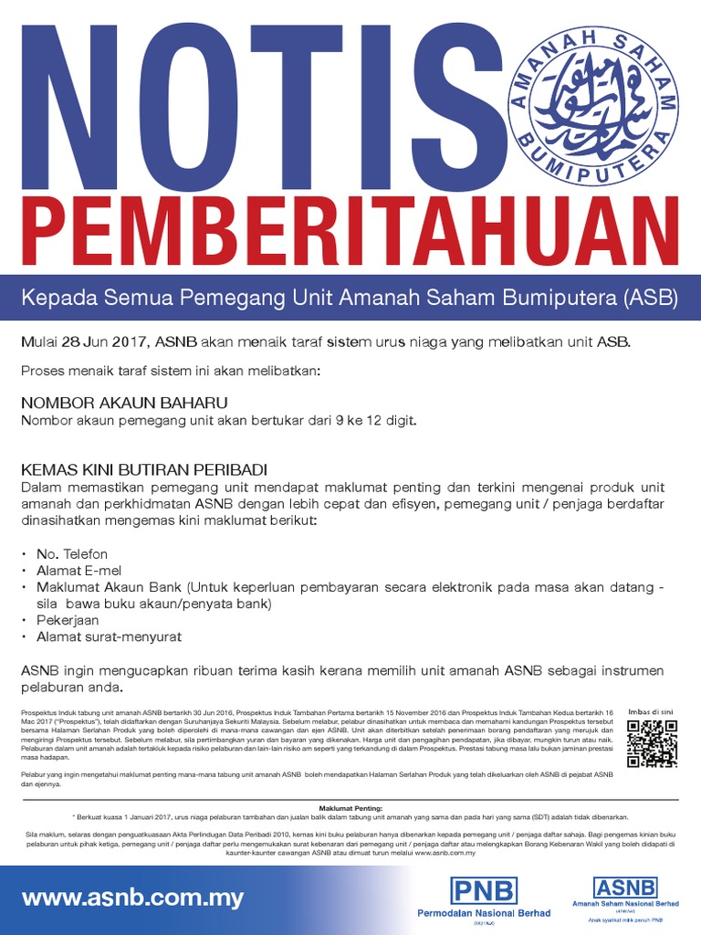 Pemberitahuan Kepada Semua Pemegang Unit Amanah Saham Bumiputera Asb