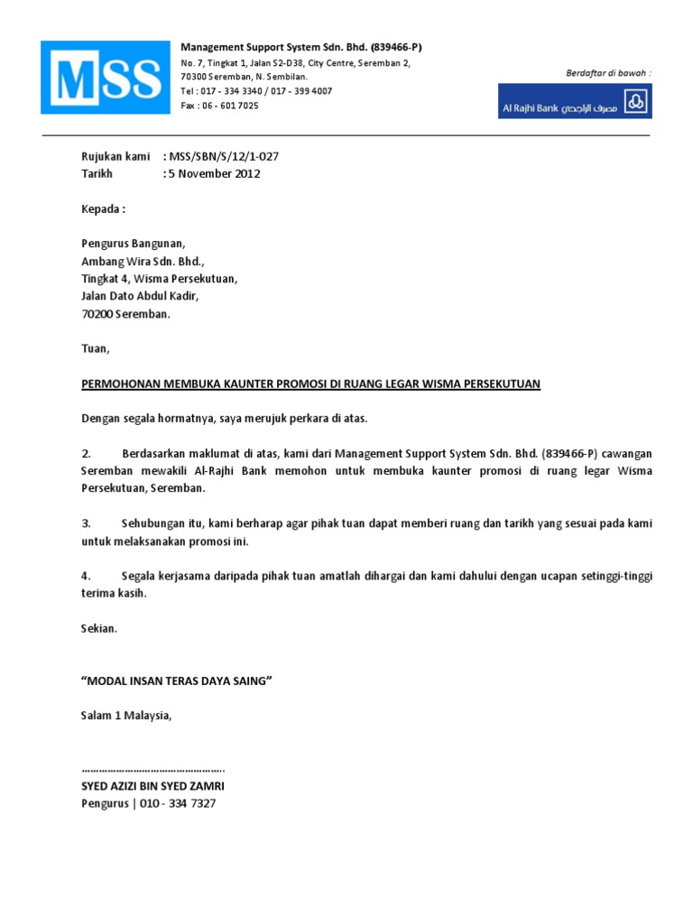 Surat Mohon Buka Kaunter Promosi
