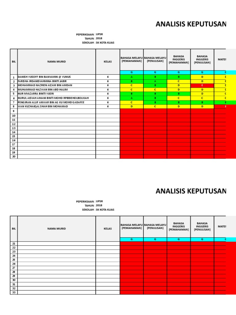 Unit Kokurikulum Bengkel Aplikasi Analisis Keputusan Upsr