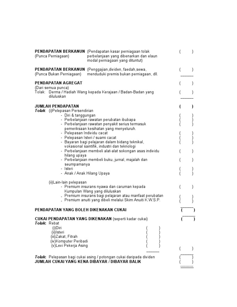Pendapatan Berkanun Tolak I Pelepasan Persendirian