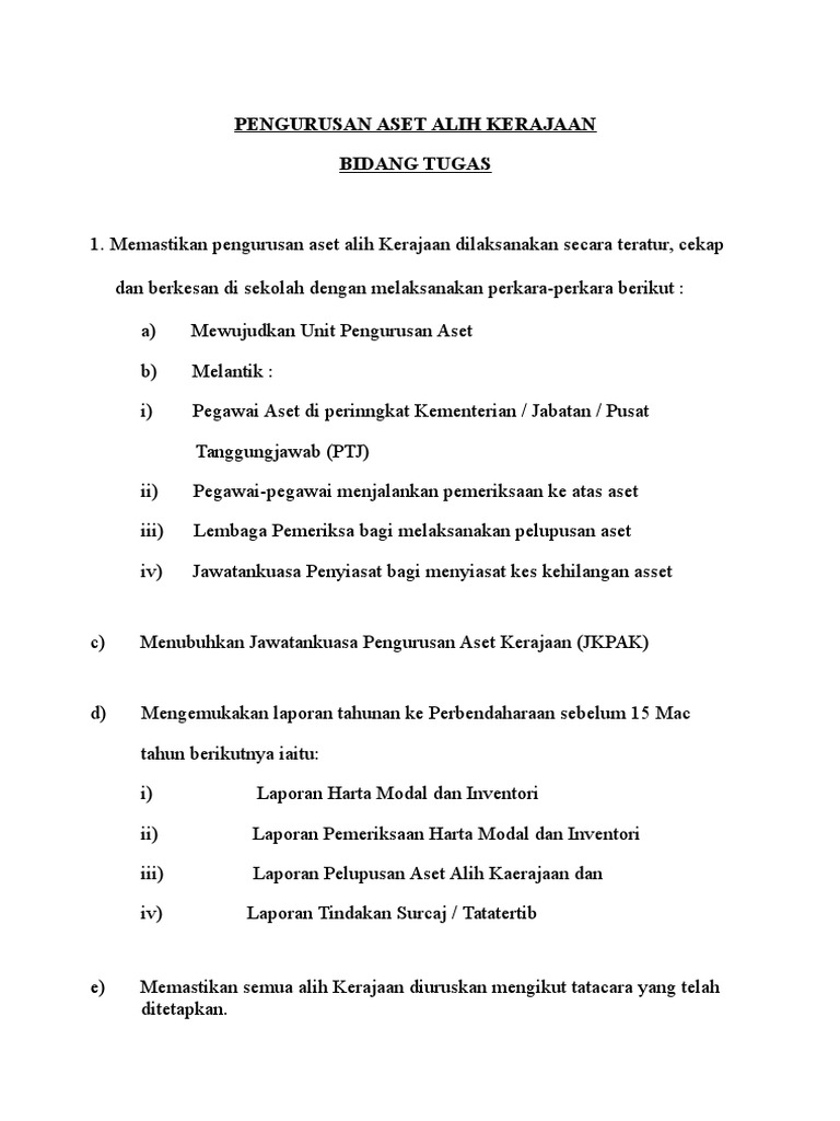 Bidang Tugas Pengurusan Aset Alih Kerajaan