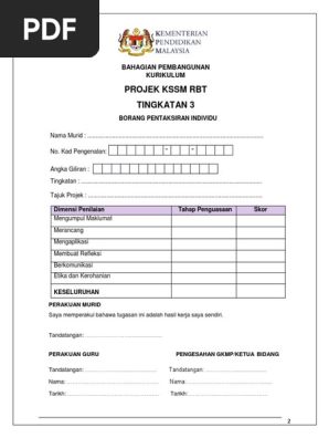 Projek Kssm Rbt Tingkatan 3 Bahagian Pembangunan Kurikulum
