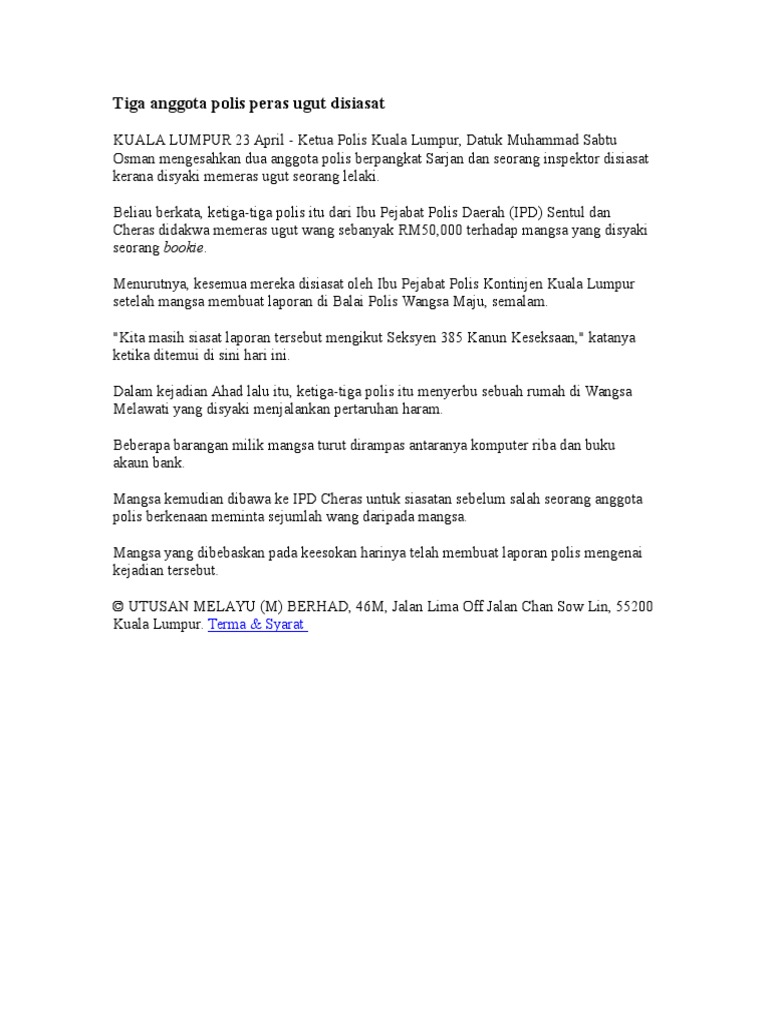 Tiga Anggota Polis Peras Ugut Disiasat Terma Syarat