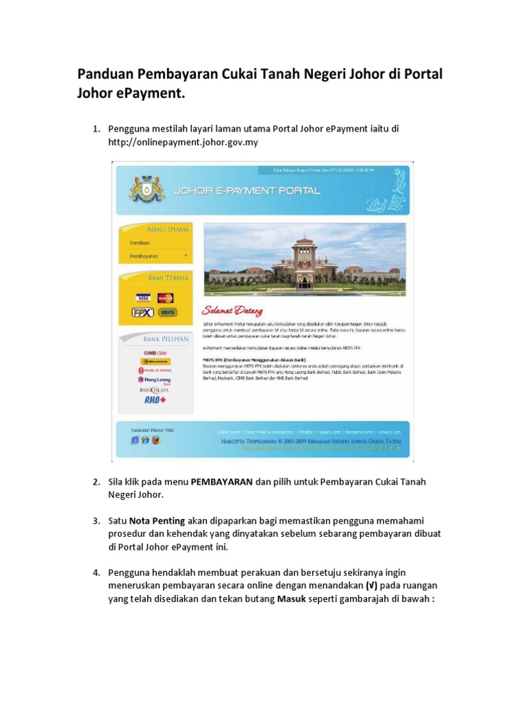 Panduan Pembayaran Cukai Tanah Negeri Johor Di Portal Johor Epayment