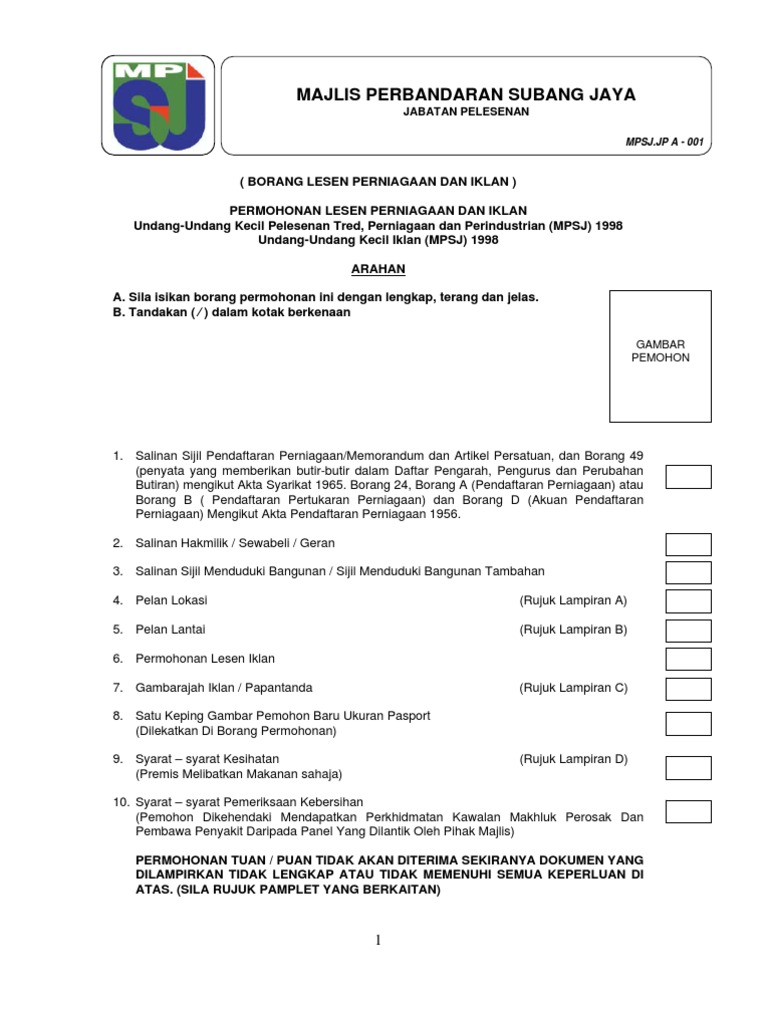 Borang Permohonan Lesen Premis Perniagaan Majlis