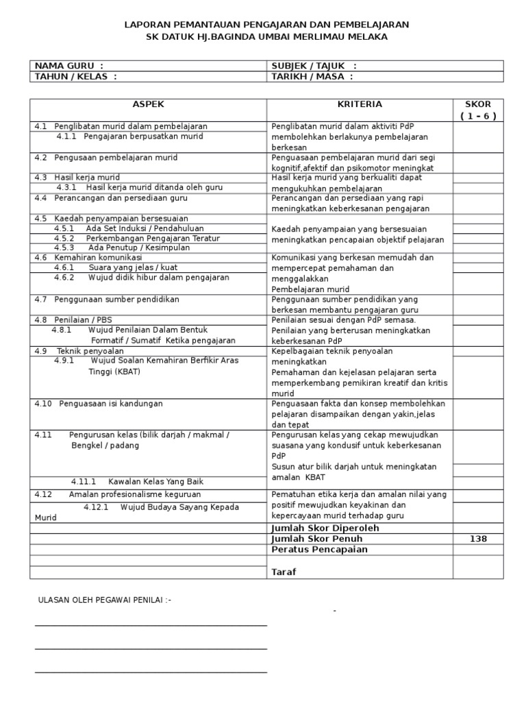 Borang Pencerapan Pengajaran Dan Pembelajaran
