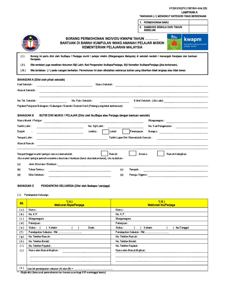 Borang Permohonan Kwapm 2020 Kumpulan Wang Amanah Pelajar Miskin