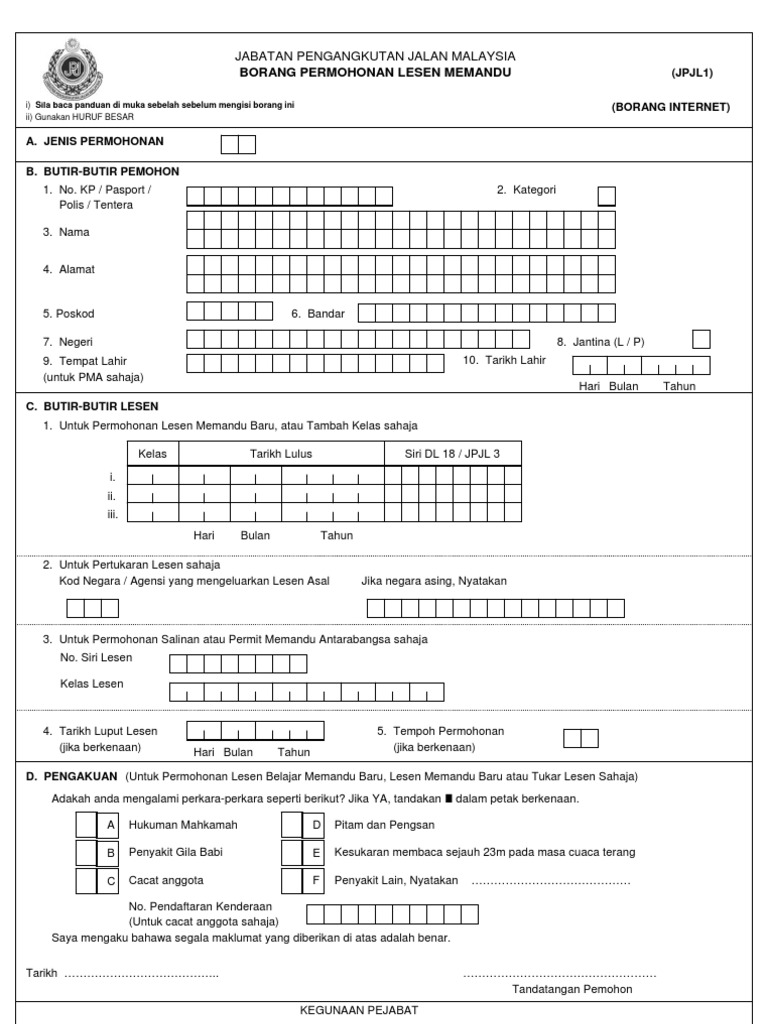 Jabatan Pengangkutan Jalan Malaysia Borang Jpjl1 Pdf Jabatan Pengangkutan Jalan Malaysia Borang