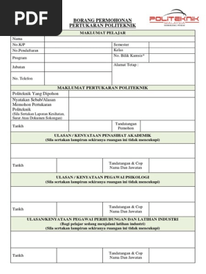 Borang Permohonan Pertukaran Politeknik