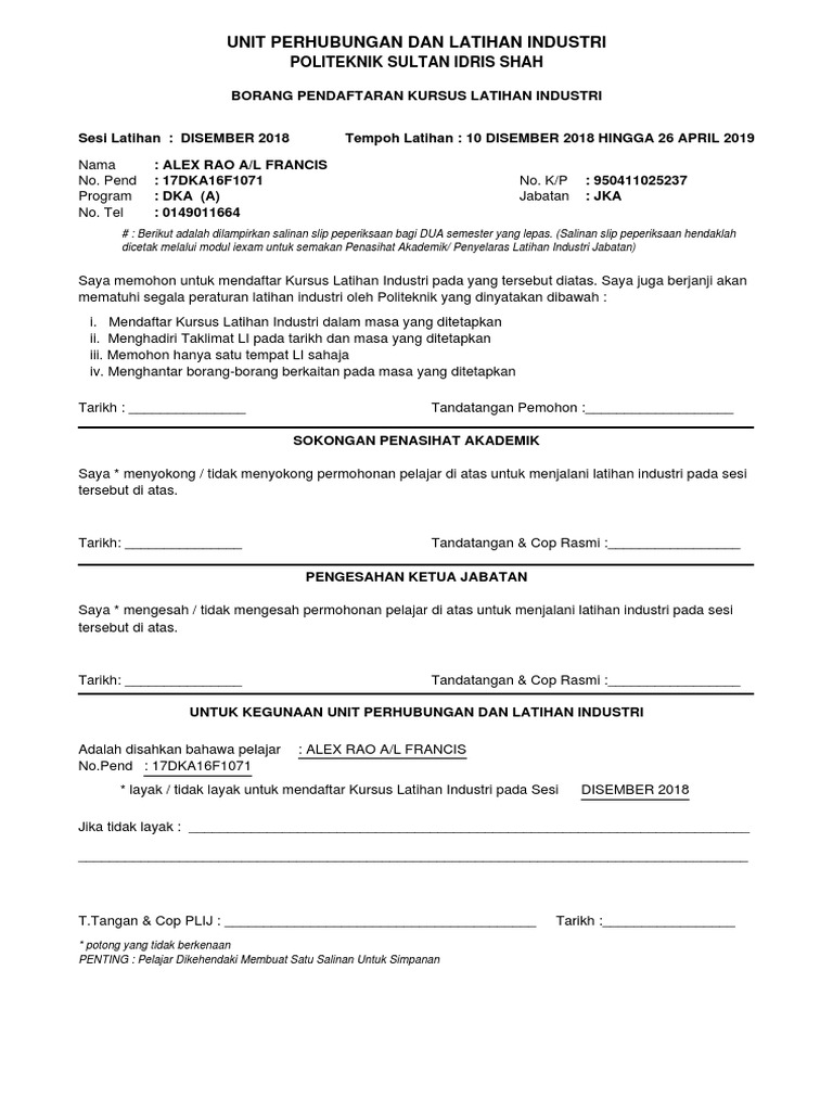 Kementerian Pendidikan Malaysia Borang Senarai Semak Jabatan Hal Ehwal Pelajar Politeknik Banting Pdf Document