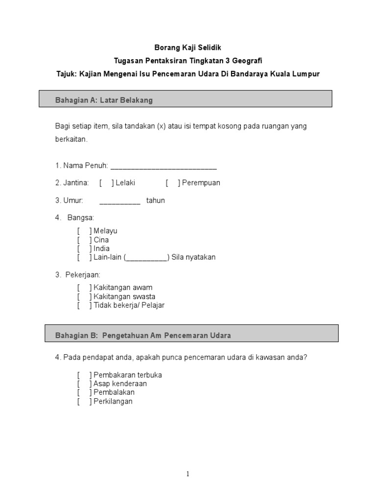 Contoh Borang Soal Selidik Geografi Tingkatan 2