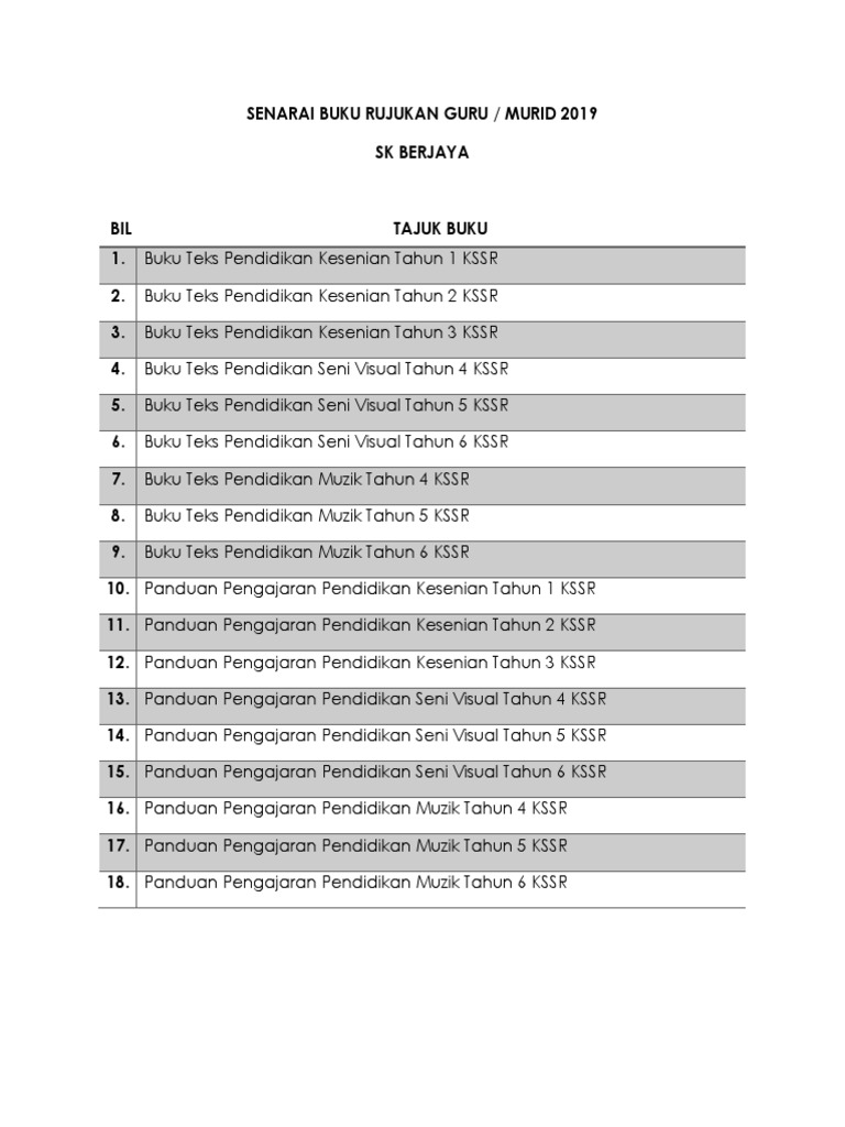 Senarai Buku Rujukan Guru Murid Tahun 2018