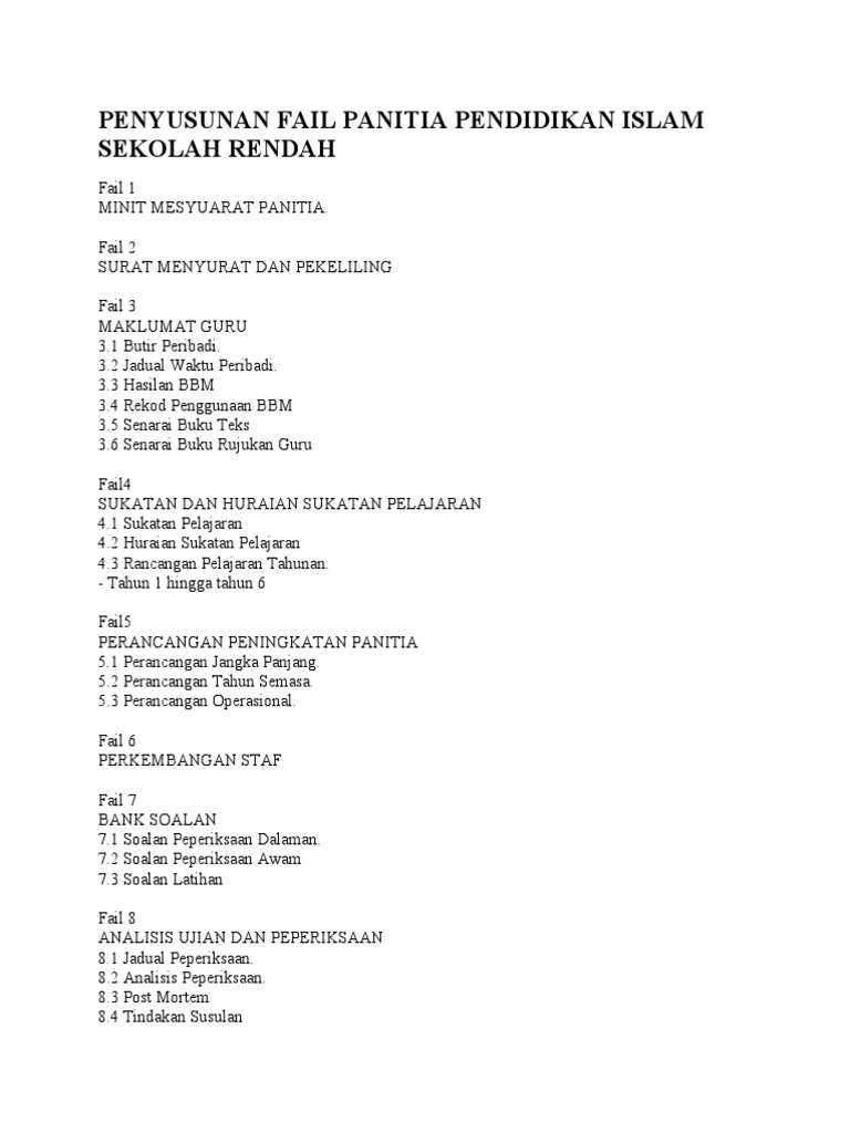 Penyusunan Fail Panitia Pendidikan Islam Sekolah Rendah