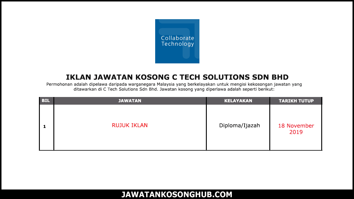 Jawatan Kosong Terkini C Tech Solutions Sdn Bhd