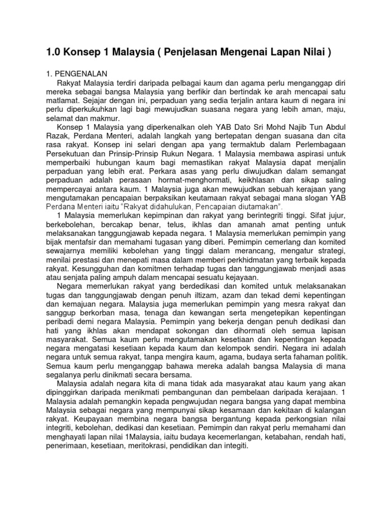 Doc Bahan Maklumat Konsep 1 Malaysia Penjelasan Mengenai Lapan Nilai Yong Tee Academia Edu