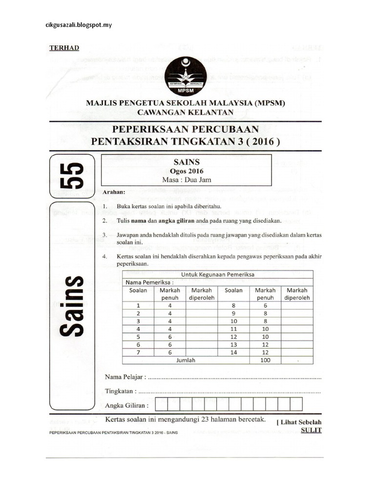 Borang Soal Selidik Geografi Tingkatan 1 2019