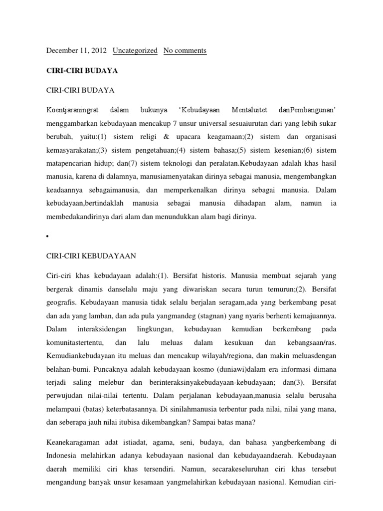 Ciri Ciri Budaya