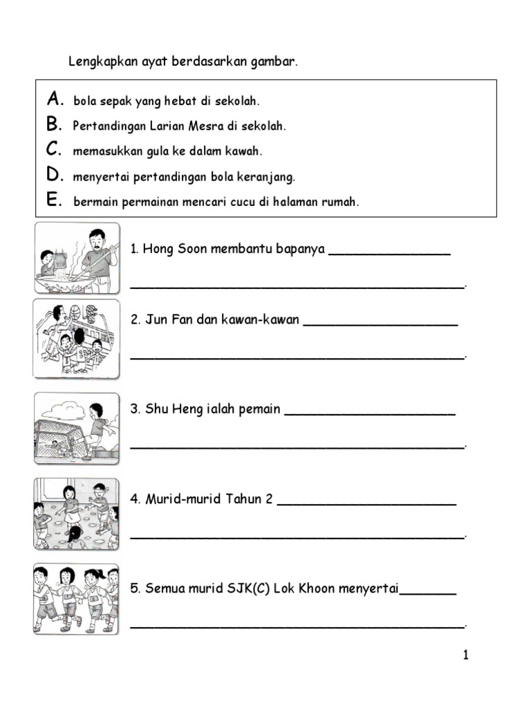 Latihan Bina Ayat Bm Tahun 1 Dan 2 Berdefinisi Cina Elementary Worksheets School Worksheets Color Worksheets