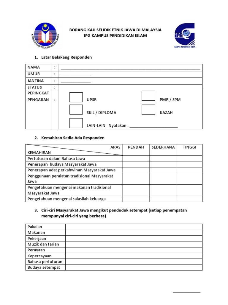Borang Kaji Selidik Etnik Jawa Di Malaysia