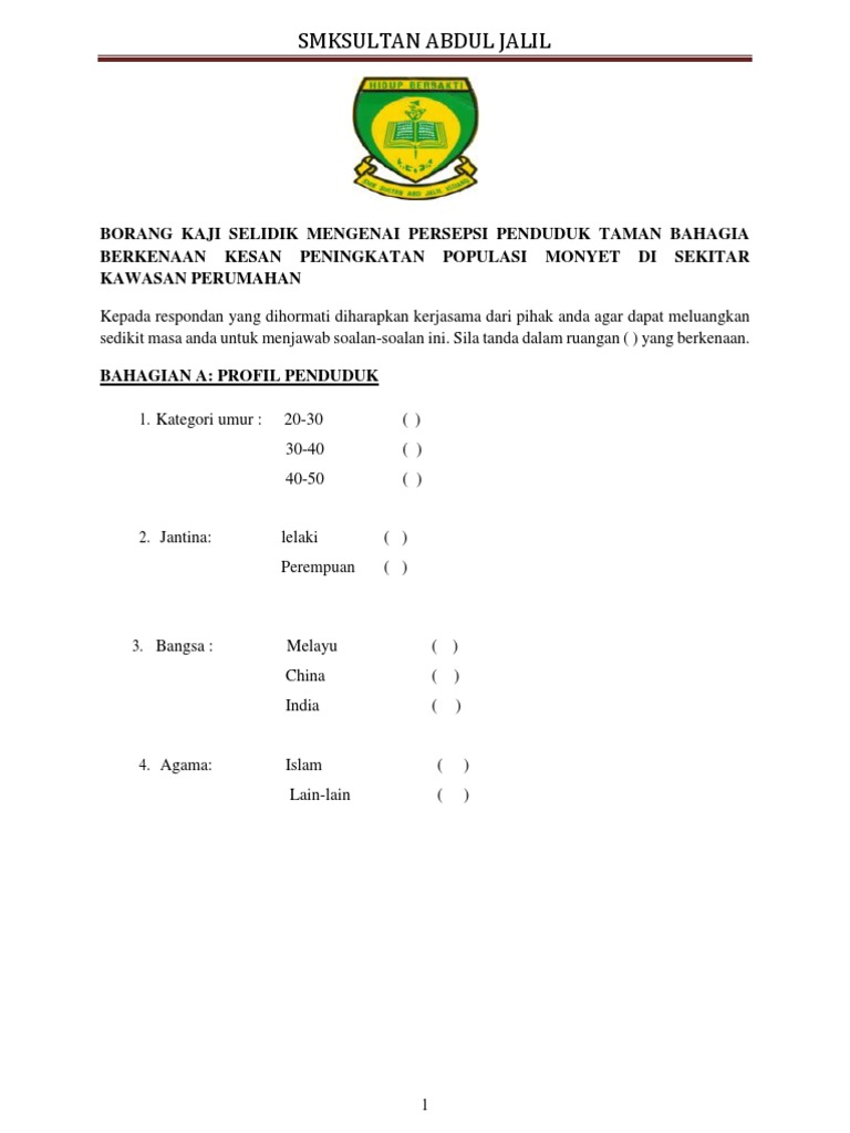 Contoh Borang Soal Selidik Masyarakat Setempat