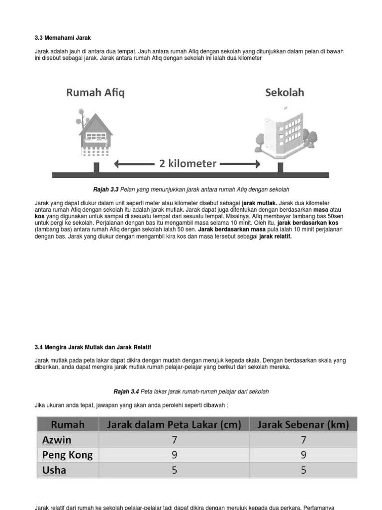 3 3 Memahami Jarak Rajah 3 3 Pelan Yang Menunjukkan Jarak Antara Rumah Afiq Dengan Sekolah