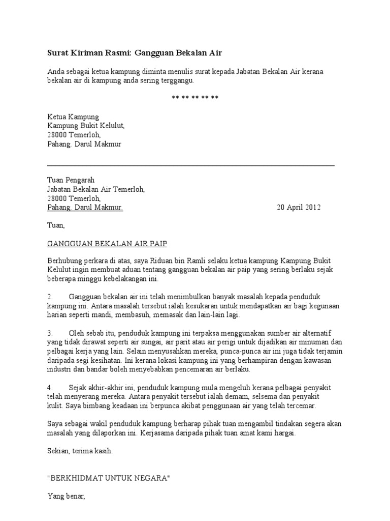 Surat Kiriman Rasmi Aduan Pencemaran Sungai Spm Surat Ras