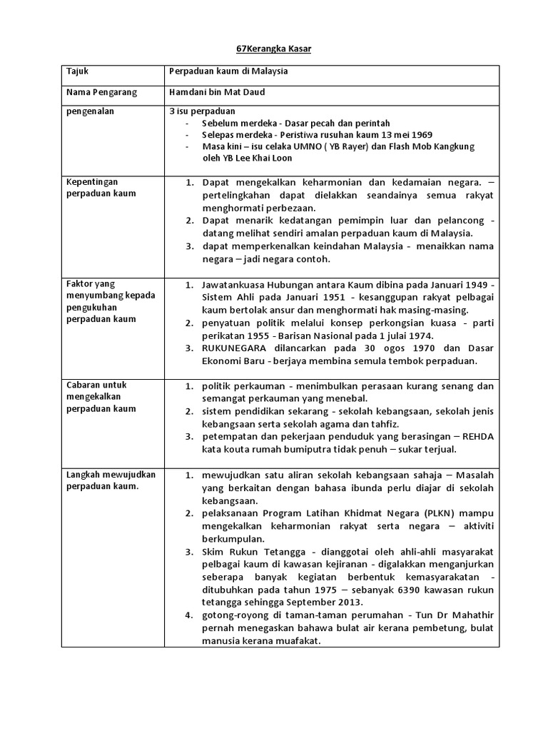 Contoh Kerangka Kasar Sejarah Tingkatan 2