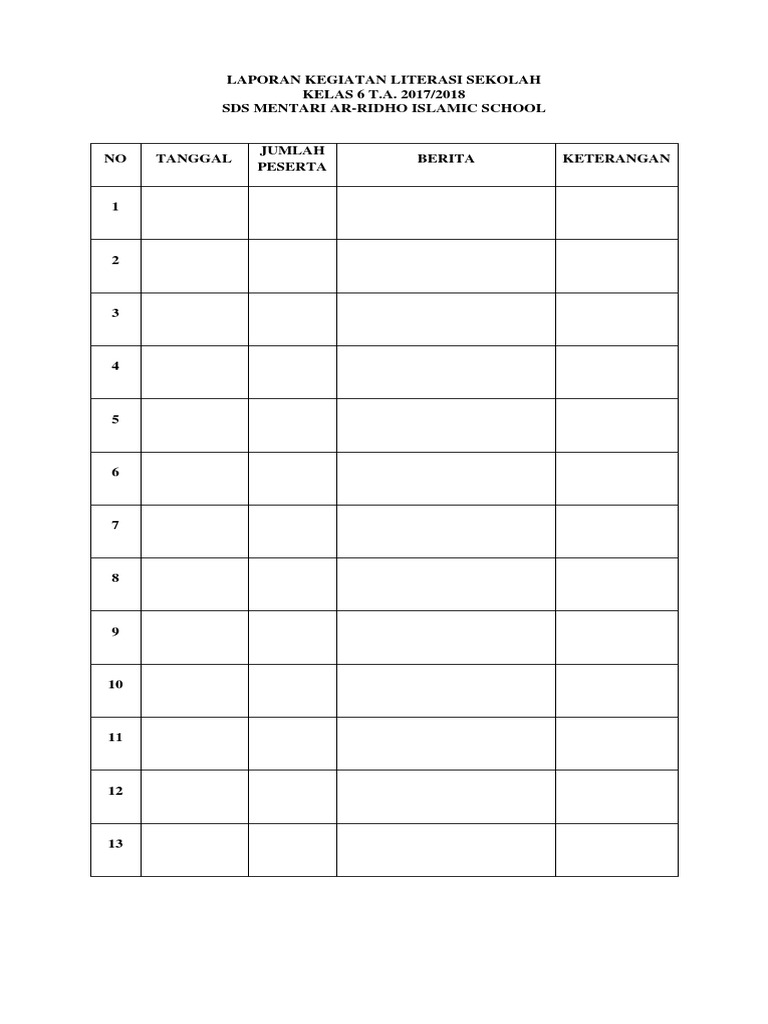 Contoh Format Rencana Dan Laporan Pelaksanaan Kegiatan Literasi Sd Bagikan Contoh