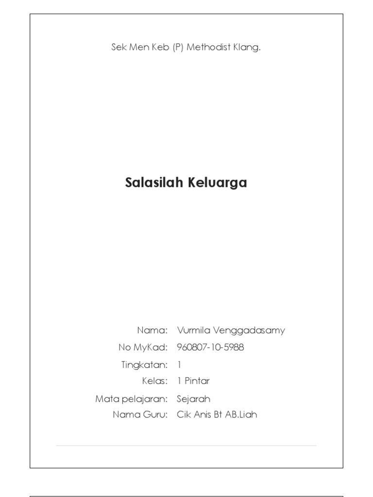 Sejarah Diri Dan Keluarga Sejarah Tingkatan 1 Aimyaimielya Com