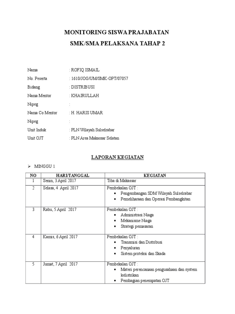 Doc Laporan Kegiatan Harian Dan Mingguan Ade Taryadi Academia Edu