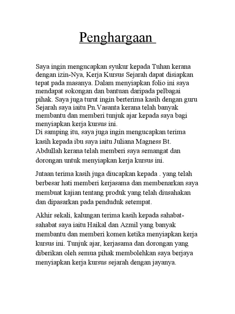 Penghargaan Sample For Folio Sejarah Ting 3