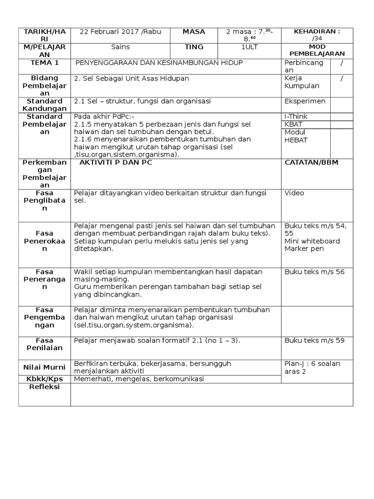 Contoh Rph Sains Dlp Lesson Plan Cognitive Science