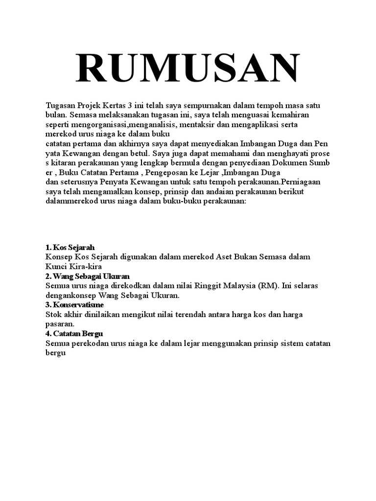 Rumusan Account F5 Docx R Rumusan Tugasan Projek Ini Telah Disempurnakan Dalam Tempoh Masa 2 Bulan Semasa Melaksanakan Tugasan Ini Saya Telah Course Hero