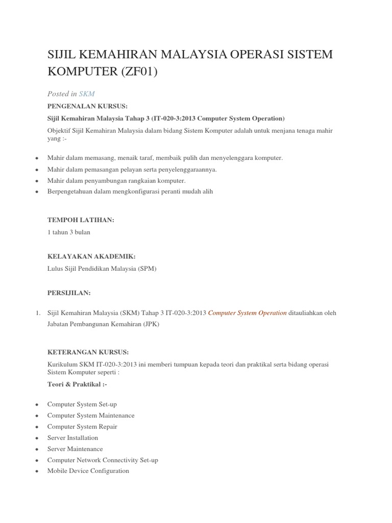 Sijil Kemahiran Malaysia Operasi Sistem Komputer
