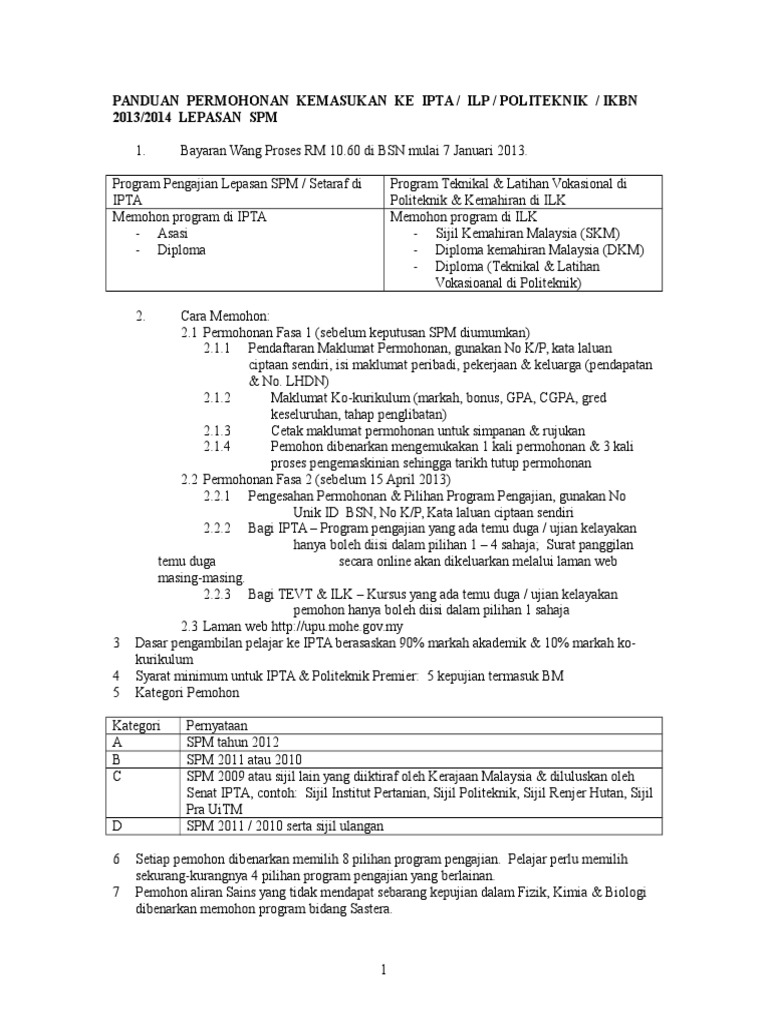 Panduan Permohonan Kemasukan Ke Ipta Ilp Politeknik Ikbn 2013 2014 Lepasan Spm