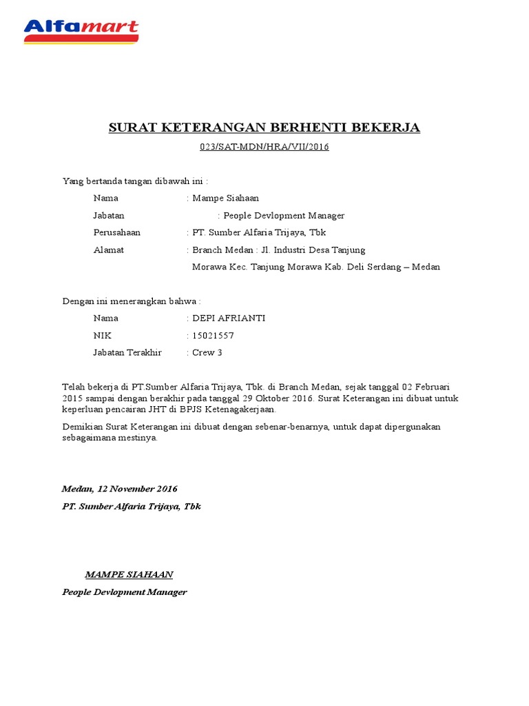 Contoh Surat Keterangan Berhenti Kerja Dari Perusahaan