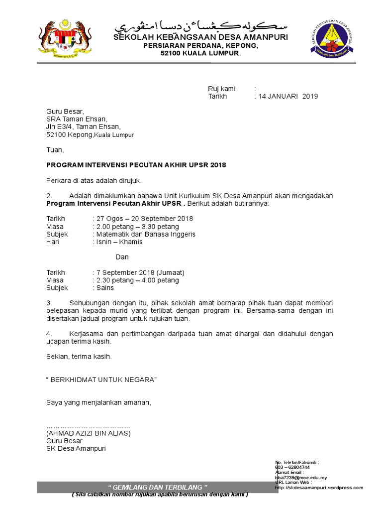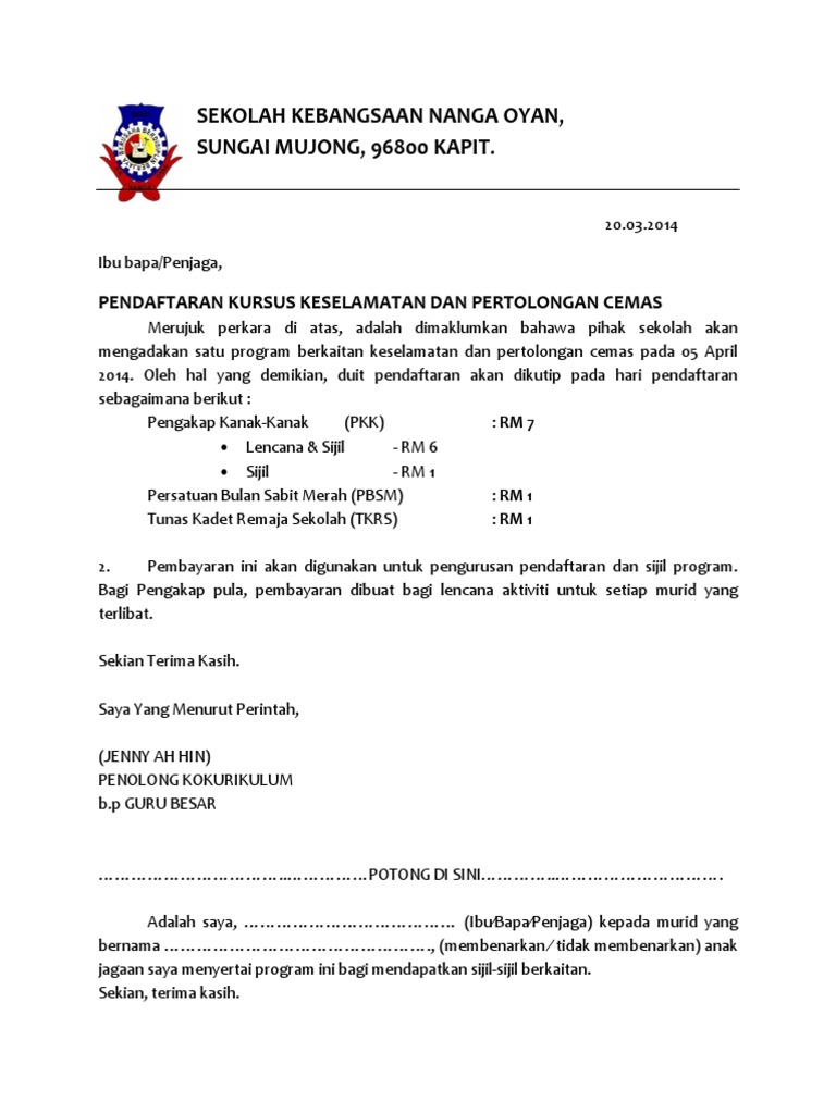 Contoh Surat Makluman Ibu Bapa Utk Program