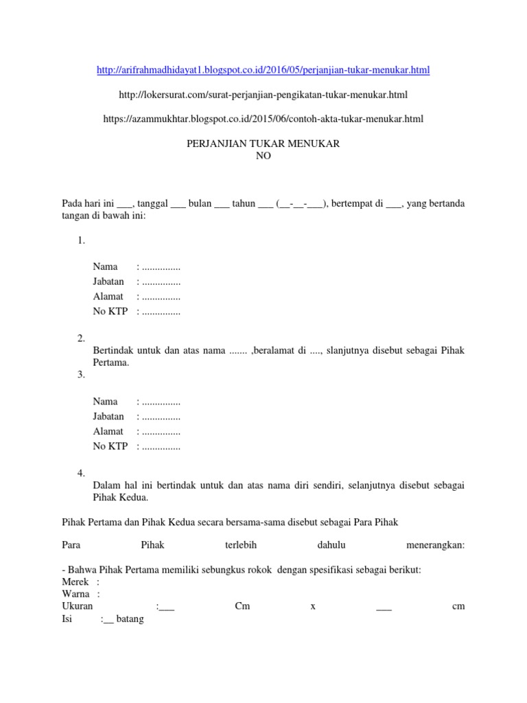 Contoh Surat Perjanjian Tukar Menukar Tanah Kumpulan Surat Penting