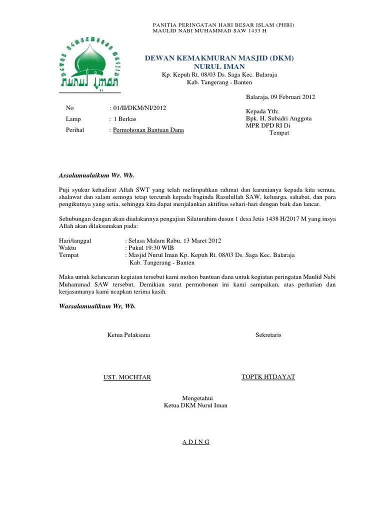 Contoh Surat Permohonan Dana Maulid Nabi Contoh Seputar Surat